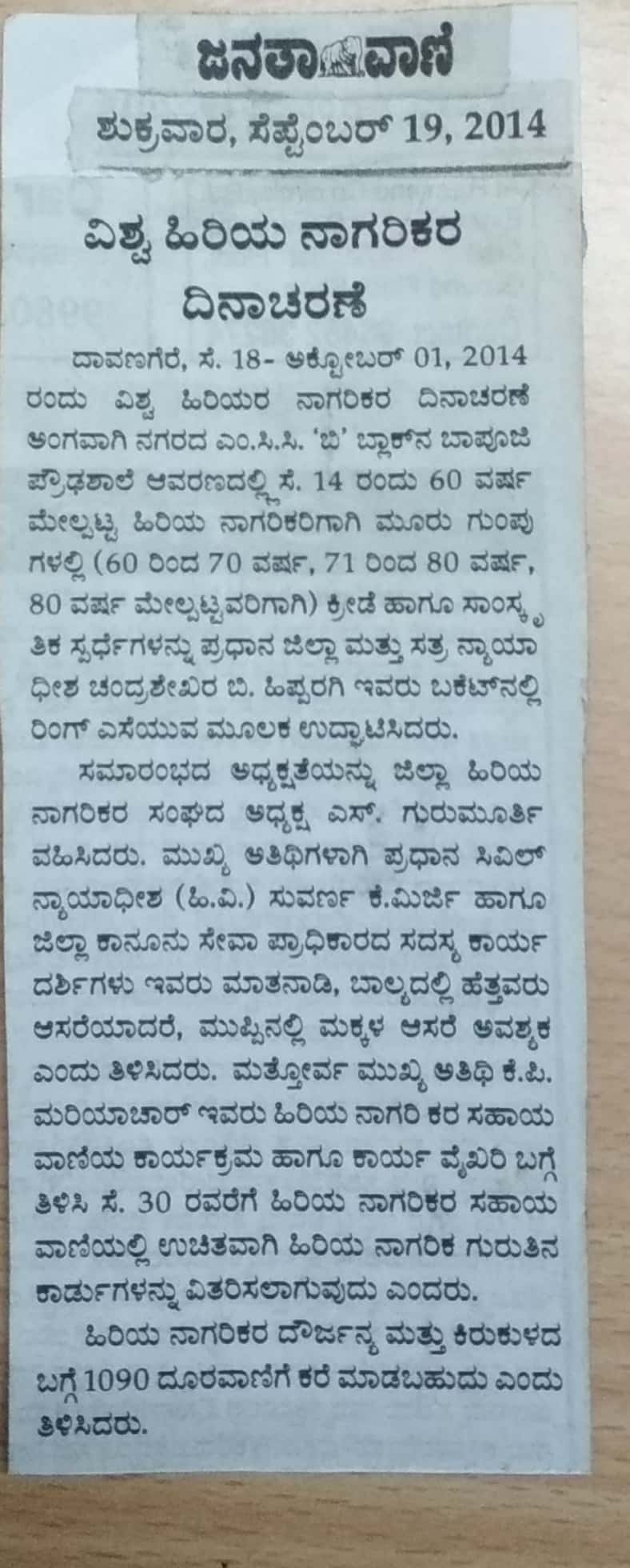 ಹಿರಿಯನಾಗರಿಕರಿಗೆ ದಿನಪತ್ರಿಕೆಗಳು ಹಾಗೊ ಕಥೆ ಪುಸ್ತಕಗಳ ಸೌಲಭ್ಯ ದೊರೆಯುವುದು