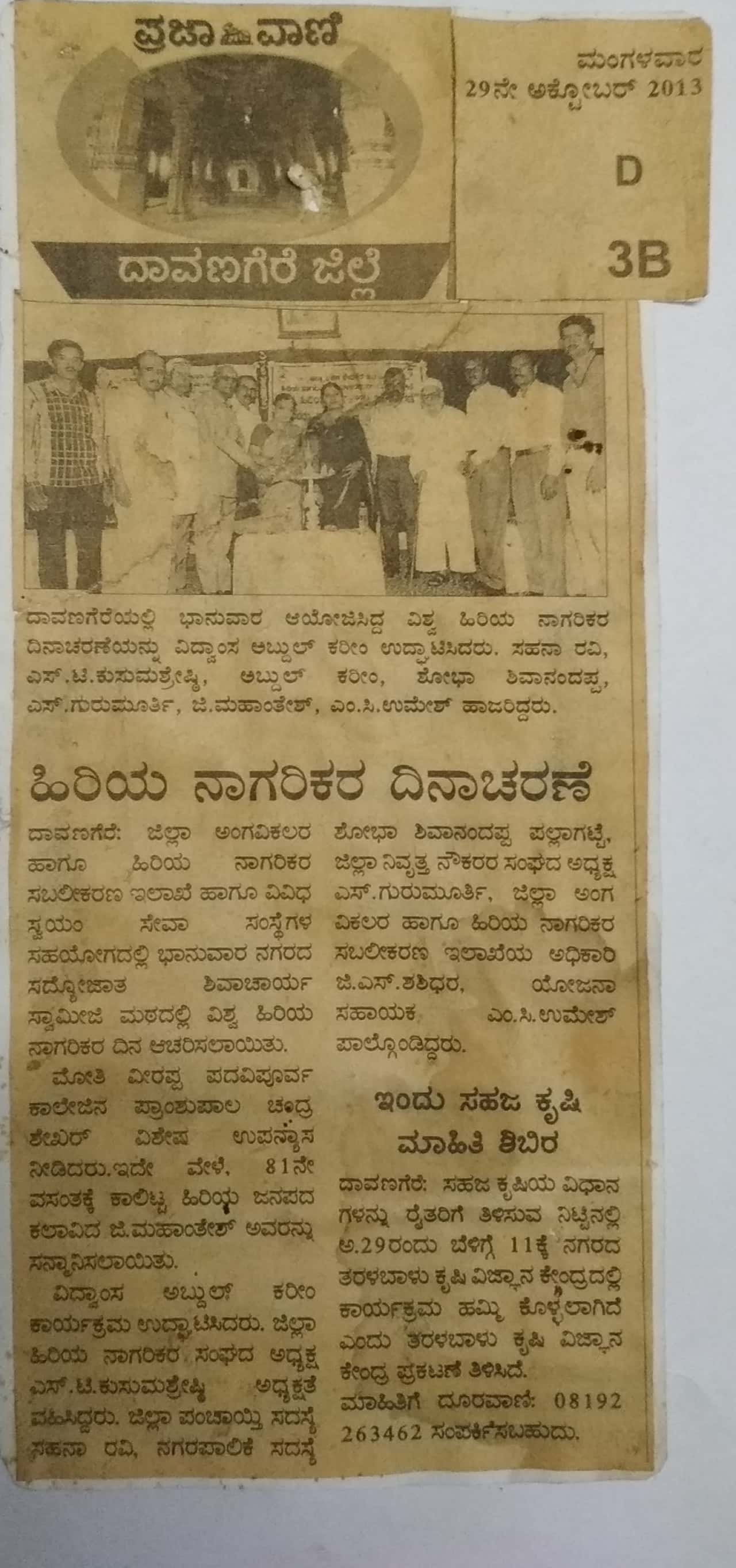 ದಾವಣಗೆರಯ ಡಿ.ವೈ.ಎಸ್.ಪಿ ಯಶೋದ ವೆಂಟಗೋಡಿ ರವರು ತಮ್ಮ ಮಗಳ ಹುಟ್ಡುಹಬ್ಬವನ್ನು ಅಶ್ರಮಕ್ಕೆ ಅಗಮಿಸಿ ಹಿರಿಯ ನಾಗರಿಕರ ಸಮ್ಮುಖದಲ್ಲಿ ಅಚರಿಸಿಕೊಂಡರು ಈ ಕಾರ್ಯಕ್ರಮದಲ್ಲಿ ಸಂಸ್ಥಯ ಕಾರ್ಯದರ್ಶಿಗಳು ಭಾಗವಹಿಸಿದ್ದರು